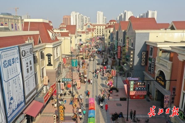 长江日报大武汉客户端1月3日讯 1月3日,天气晴好,市民来到汉口北的汉口镇·戏码头主街区游玩。汉口镇实景复制了京汉火车站、东方茶港、汉口码头、老汉口茶厂等城市历史商业地标。