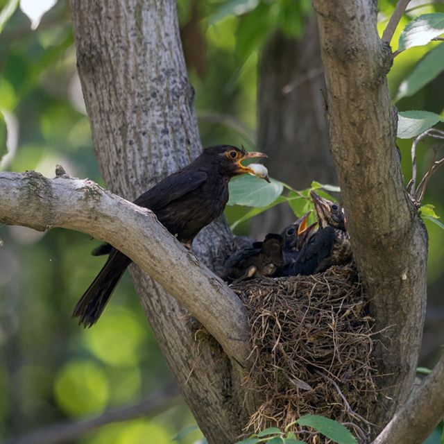 长江日报融媒体6月24日讯(记者陈奇雄)6月24日,武汉市观鸟协会会员李维斌在汉口江滩观鸟时,用相机拍下了两只成年乌鸫(音dong)悉心喂养四只幼鸟的温馨画面。他还观察到,这两只成年乌鸫竟将幼鸟拉出的粪便,吃得干干净净。