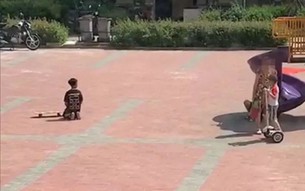 4日上午,记者来到事发小区。小区内一片空地上有两三个孩子在玩耍,其中一名小男孩的穿着,和微博图片中下跪的男孩衣服很相似。记者上前询问后,确认他就是当时的那个男孩。