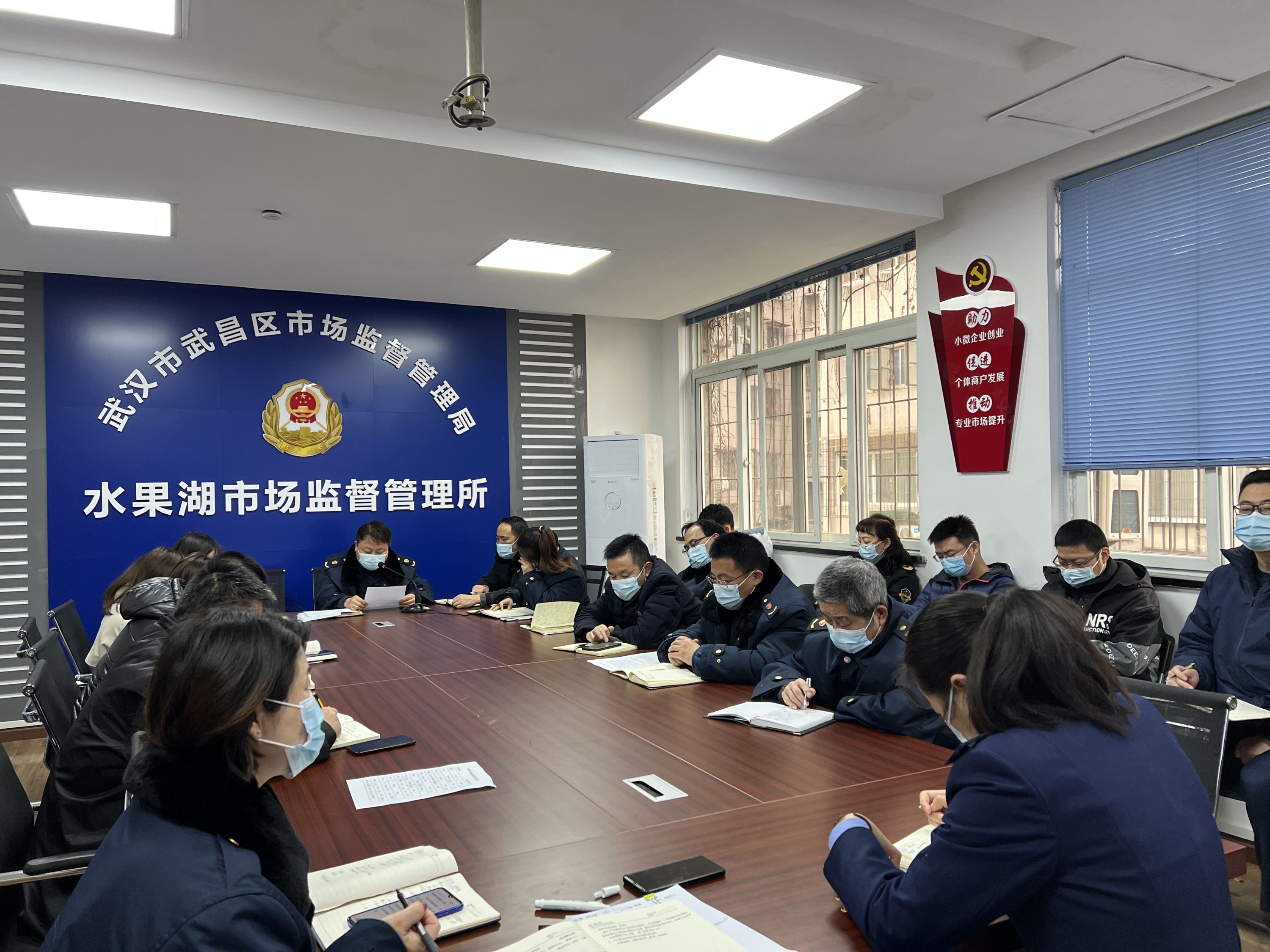 武昌区水果湖市场监管所在开晨会。通讯员伍昌菊 摄