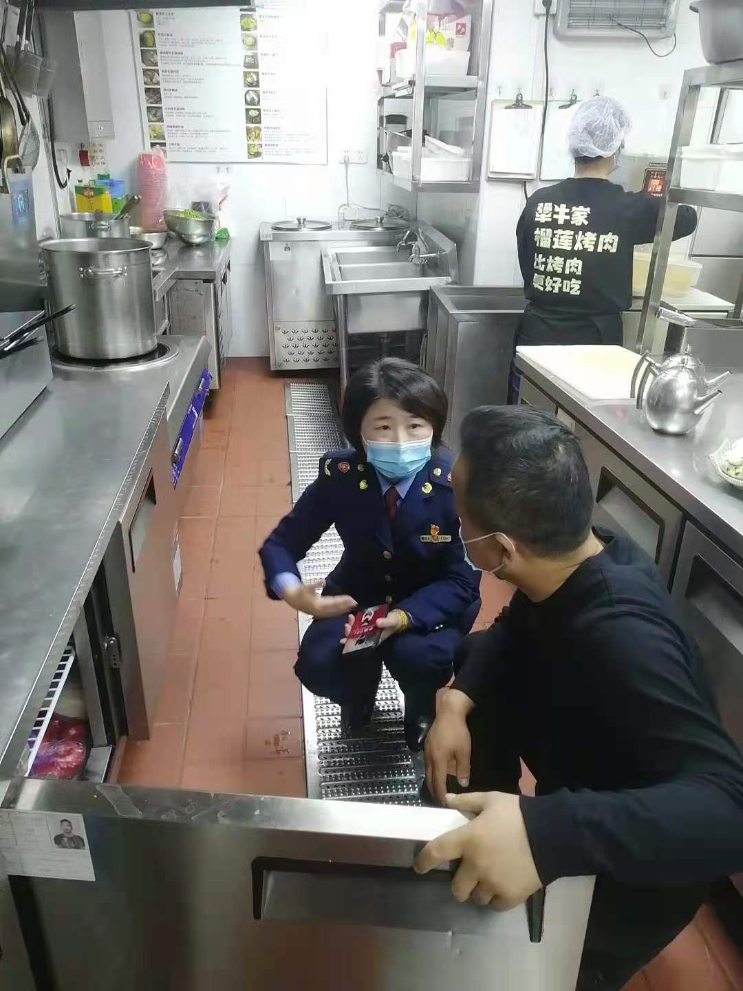 水果湖市场监管所工作人员在对小餐饮后厨进行检查(资料照片)。通讯员伍昌菊摄