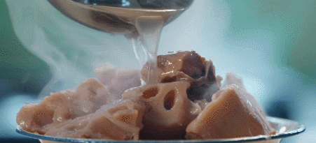 煨藕汤时还应尽量少用铁的器具,尤其少用铁勺去翻搅,不然汤汁容易变黑。
