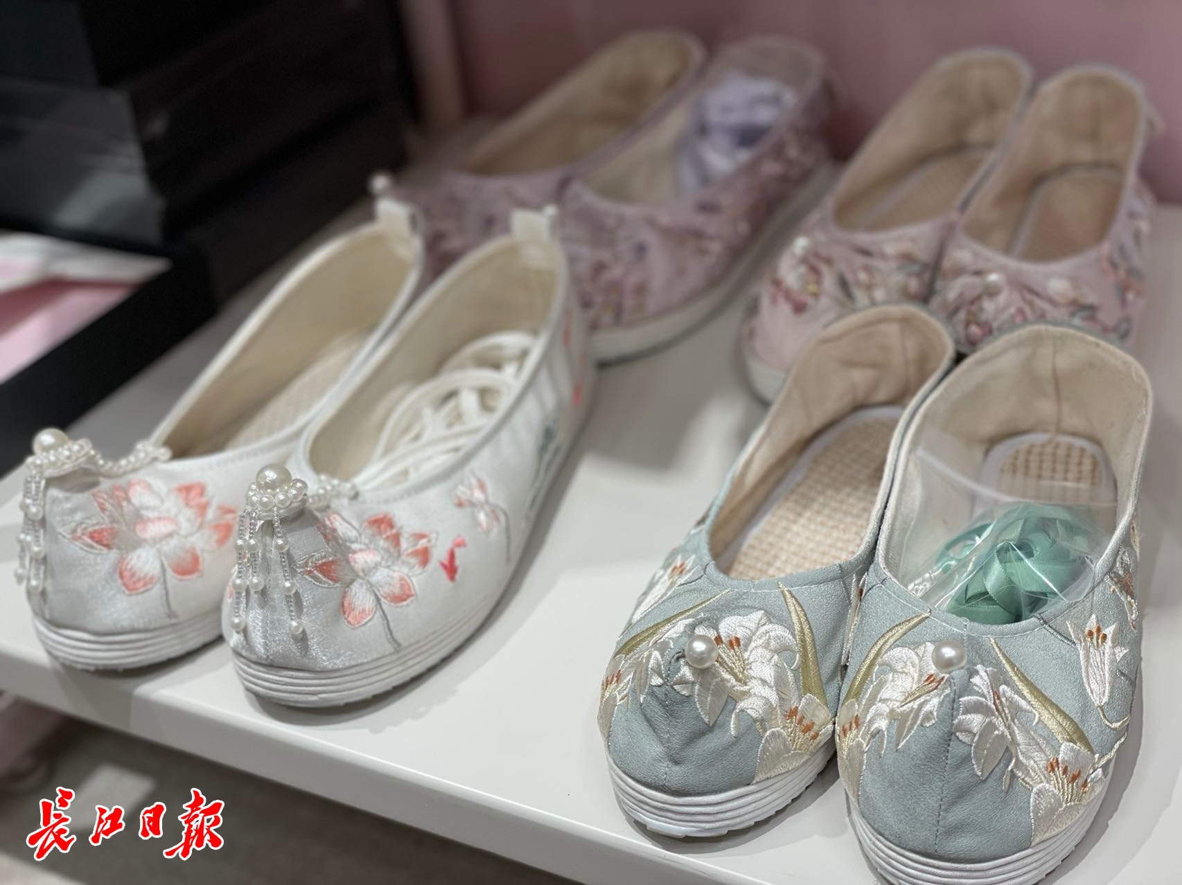 搭配汉服的“履”。 记者周满珍 摄
