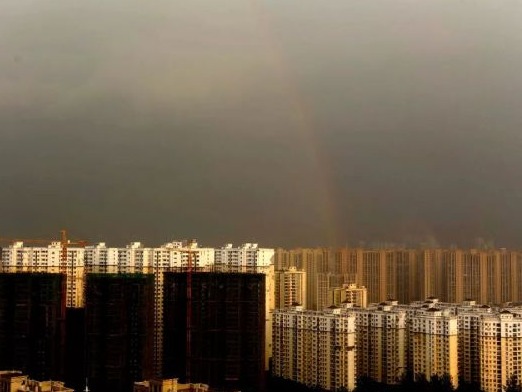 当日下午5点15分,汉阳,阵雨之后,太阳从云缝间露了出来,一道靓丽彩虹悬挂在长江之上。