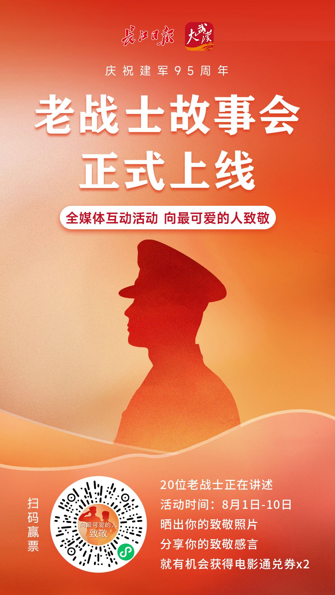 在“向最可爱的人致敬”话题里晒出你的致敬照片,或分享你的致敬感言,就有机会获得电影通兑券。在该话题下,我们将每日评选出10名致敬者,每人可获得由主办方提供的电影通兑券2张。