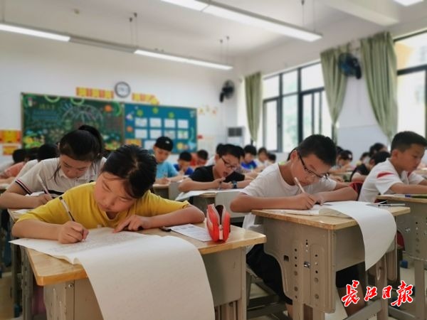 小选手们在“楚才小记者”招募活动现场奋笔疾书。记者向洁 摄
