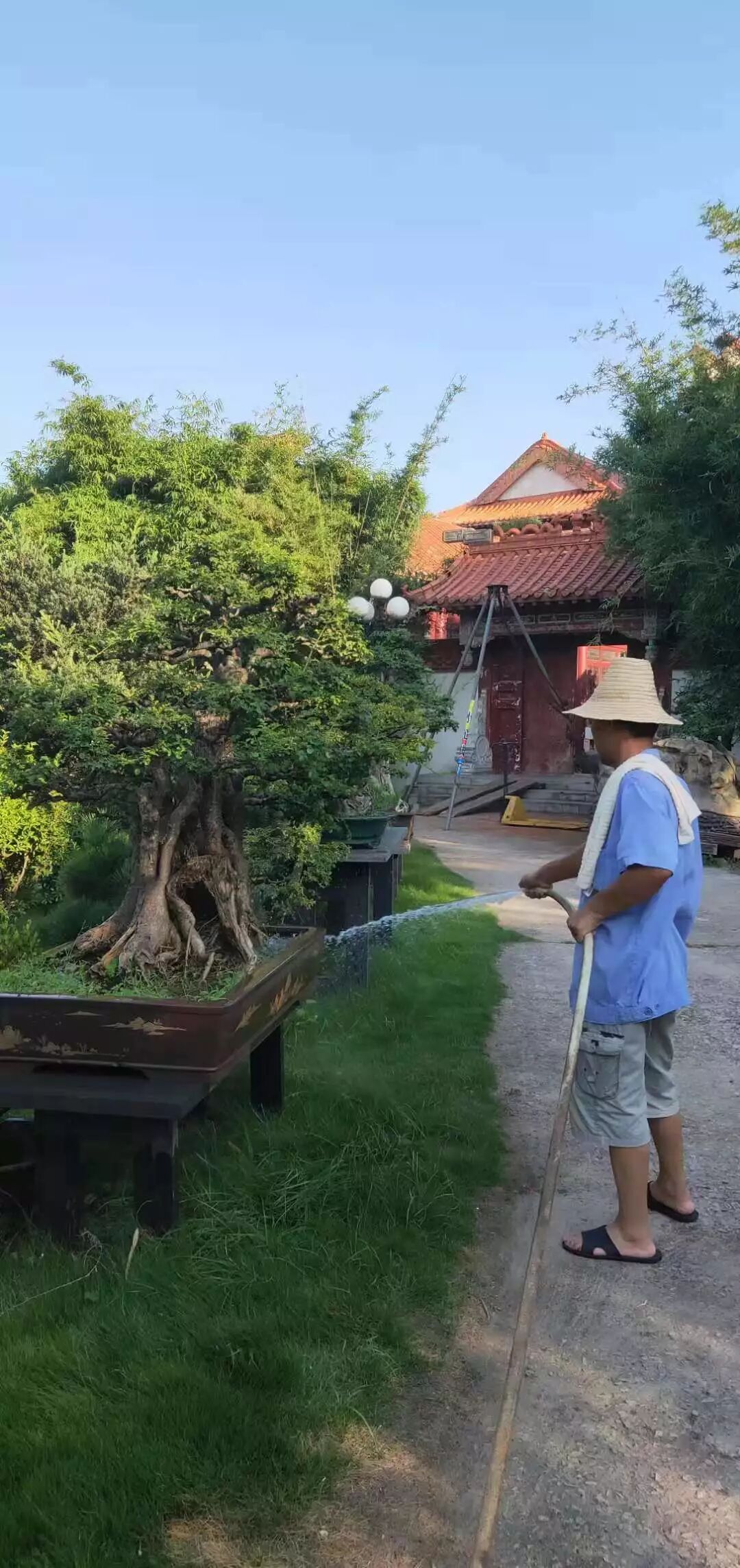 高温下,为守护奇石馆盆景区的植物,他们不惧高温、坚守岗位。他们的汗水和劳动带来的是植物的生机勃勃。