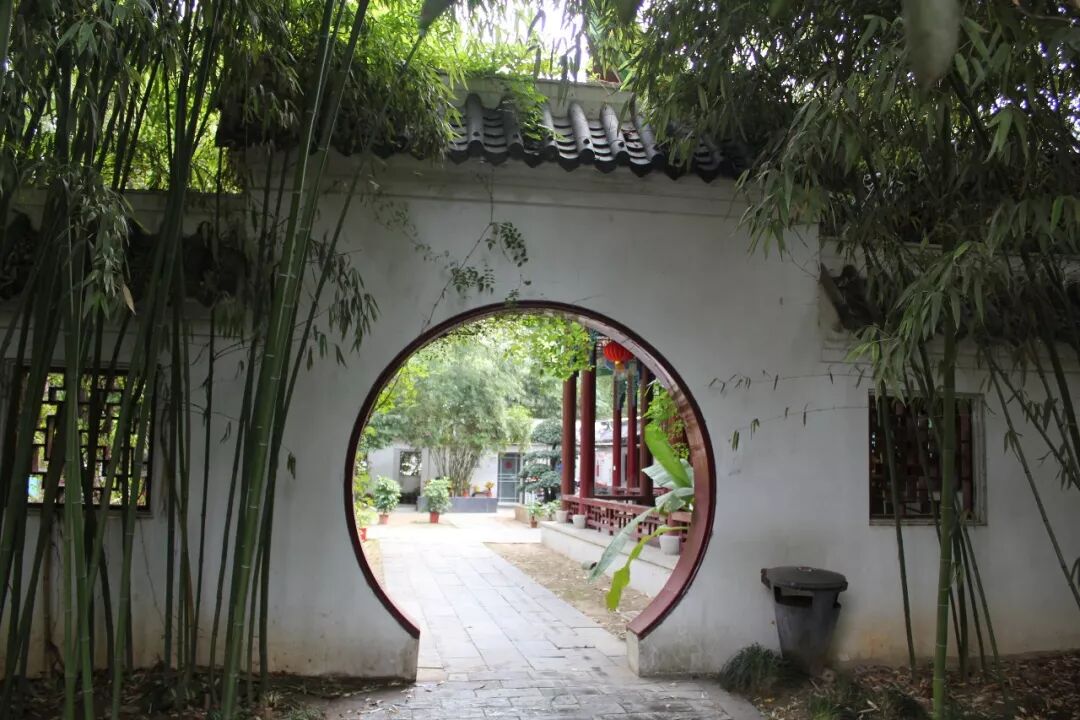 竹林绿影,生机盎然,月湖停云馆内建筑与自然相互依偎,这座拥有红漆木门的建筑,是景区以前的办公场所。