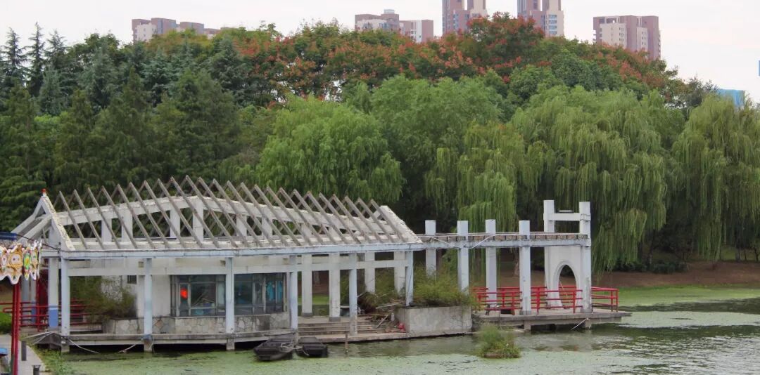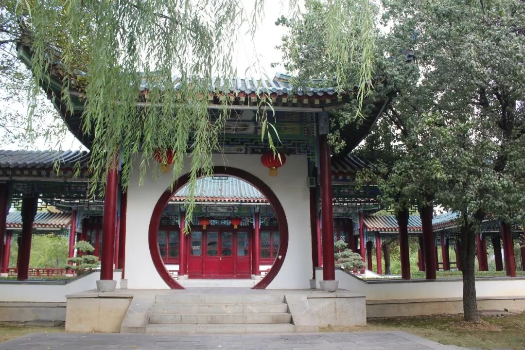 路过小桥流水,经过长廊,拂过绿柳,穿过圆形拱门,才得以窥见月湖美景的真容。独有的圆形造型,是2002年重建时特意修建的。
