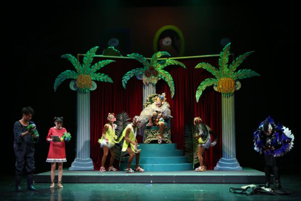 2017年,赖声川首部儿童剧《蓝马》曾来汉演出,这个“瞎掰”出来的睡前故事,在赖家传了三代人,也打动了武汉的小朋友们。两年后的《鲸鱼图书馆》同样来自于赖声川在哄睡女儿、孙女时即兴编的故事。故事中满是天马行空的想象,鲸鱼肚子里的图书馆、猴子烧书烤香蕉、用还故事的方式补回失去的书。观众们一会儿置身于放满古今中外书籍的鲸鱼肚子里,一会儿又被喷出鲸鱼肚子去到猴子王国里。