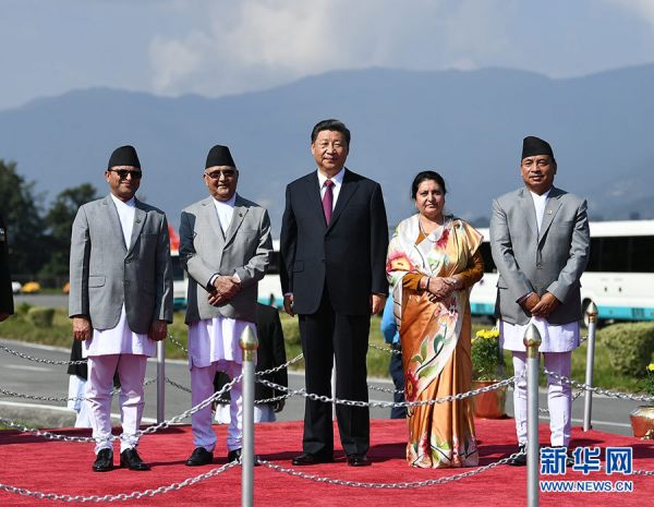 结束中印领导人第二次非正式会晤后,当地时间10月12日下午,习近平主席抵达尼泊尔加德满都特里布文国际机场。在这里,尼泊尔总统班达里为习近平举行具有浓郁尼泊尔民族特色的欢迎仪式。