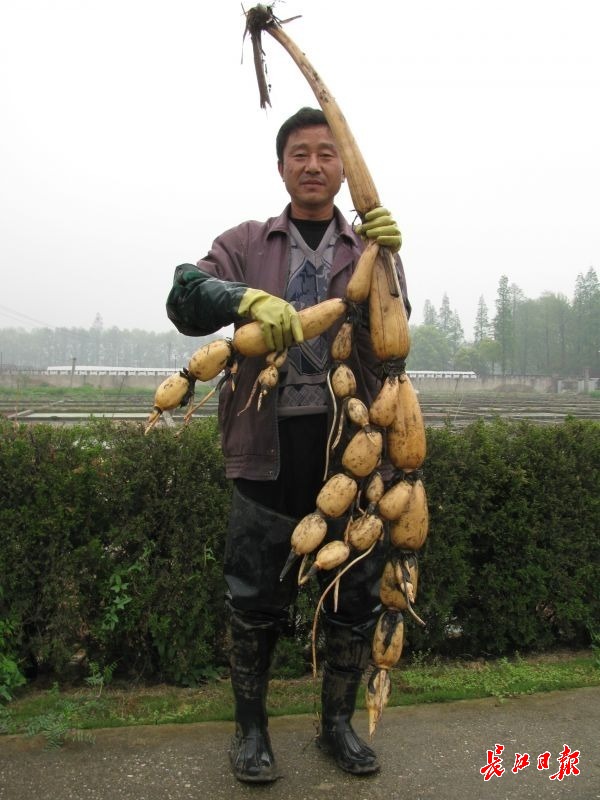 在市农科院的全国最大的水生蔬菜种质资源圃,专家的话得到了印证。长江日报-长江网记者发现,和传统粉藕——蔡甸洲藕相比,高产的莲藕品种“巨无霸”亩产量高出了约一倍,而且蔡甸洲藕入地深,采挖起来更加困难,成熟期比“巨无霸”晚了2个多月。