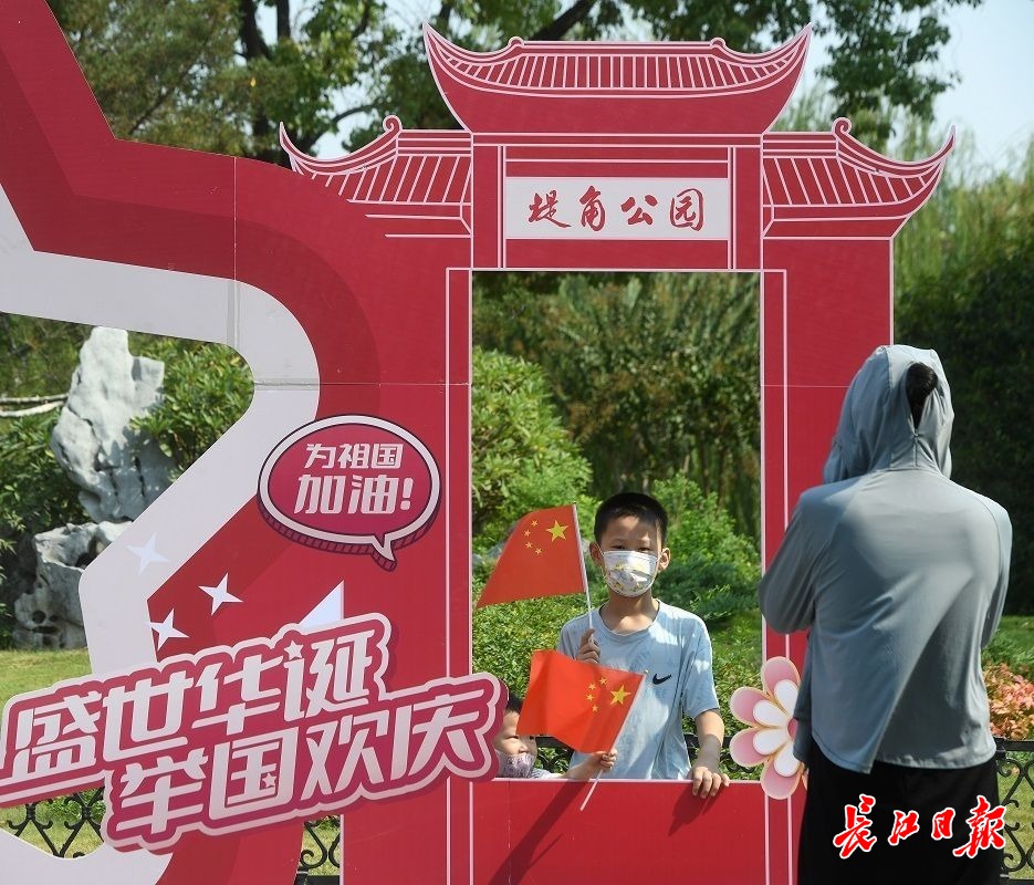 公园负责人介绍,国庆节当天,公园准备了2000面国旗发放给游园的市民;国庆假期还在公园设置国庆主题打卡墙,举办各式活动,让市民游客向祖国母亲送上自己的祝福,让假期文化生活更加丰富多彩。