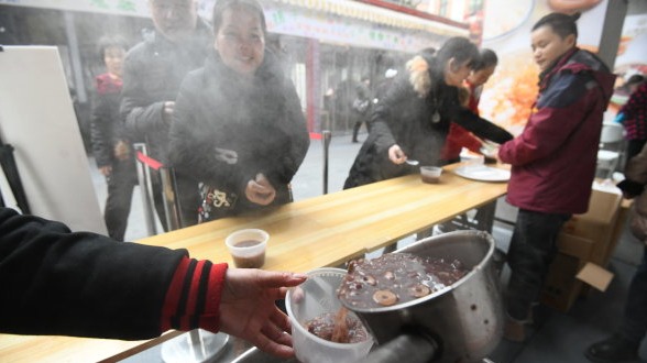 在往年,湖锦酒楼也会把腊八粥送给环卫工人、快递员、外卖小哥等城市户外的一线工作者。