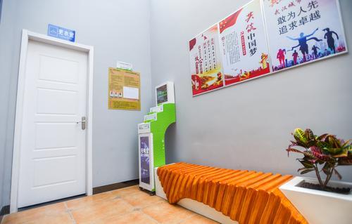 西北湖2号公厕以满分获评“十佳”第一名。这座公厕是由老旧厕所改造而成,外观采用玻璃幕墙设计,像个花房,随着光线的更替,周围四时变化可呈现出不同景象,与旁边葱茏的绿树和不远处的湖泊相掩映交织,无论从哪个角度看过去视觉效果都非常和谐。建筑湖蓝色镜面,可以营造朦胧的反射效果,具有视觉延伸作用,增加了公厕的空间感。厕所内部还设了一条人文长廊,陈列着江汉区的许多历史照片。厕所内人性化设计非常齐全,除了第三卫生间、刷脸取纸、直饮水、感应洗手液、新风系统等,还设有更衣室,方便来此锻炼的市民。
