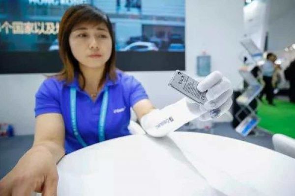 ▲2019年11月8日,工作人员在第二届进博会奥索展台展示“量子仿生手”。新华社记者 张玉薇 摄