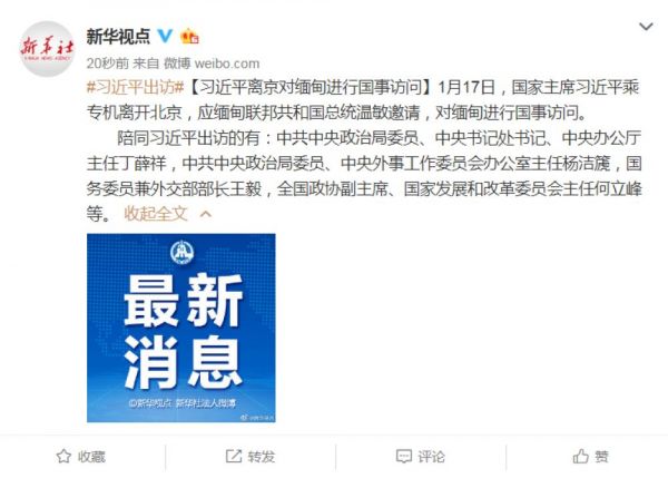 新华社内比都1月17日电(记者黄尹甲子)当地时间1月17日下午,国家主席习近平在内比都总统府出席缅甸总统温敏举行的欢迎仪式后,缅甸国务资政昂山素季专程前往总统府欢迎和问候习近平。双方进行了亲切友好的交谈,并定于18日举行会谈,就中缅关系和共同关心的问题深入交换意见。