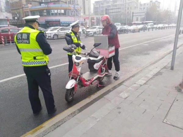 西北湖路上一位外卖小哥正在送餐
