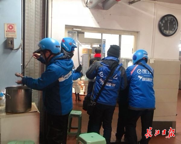 汉口台北路上一位美团外卖小哥在送餐路上