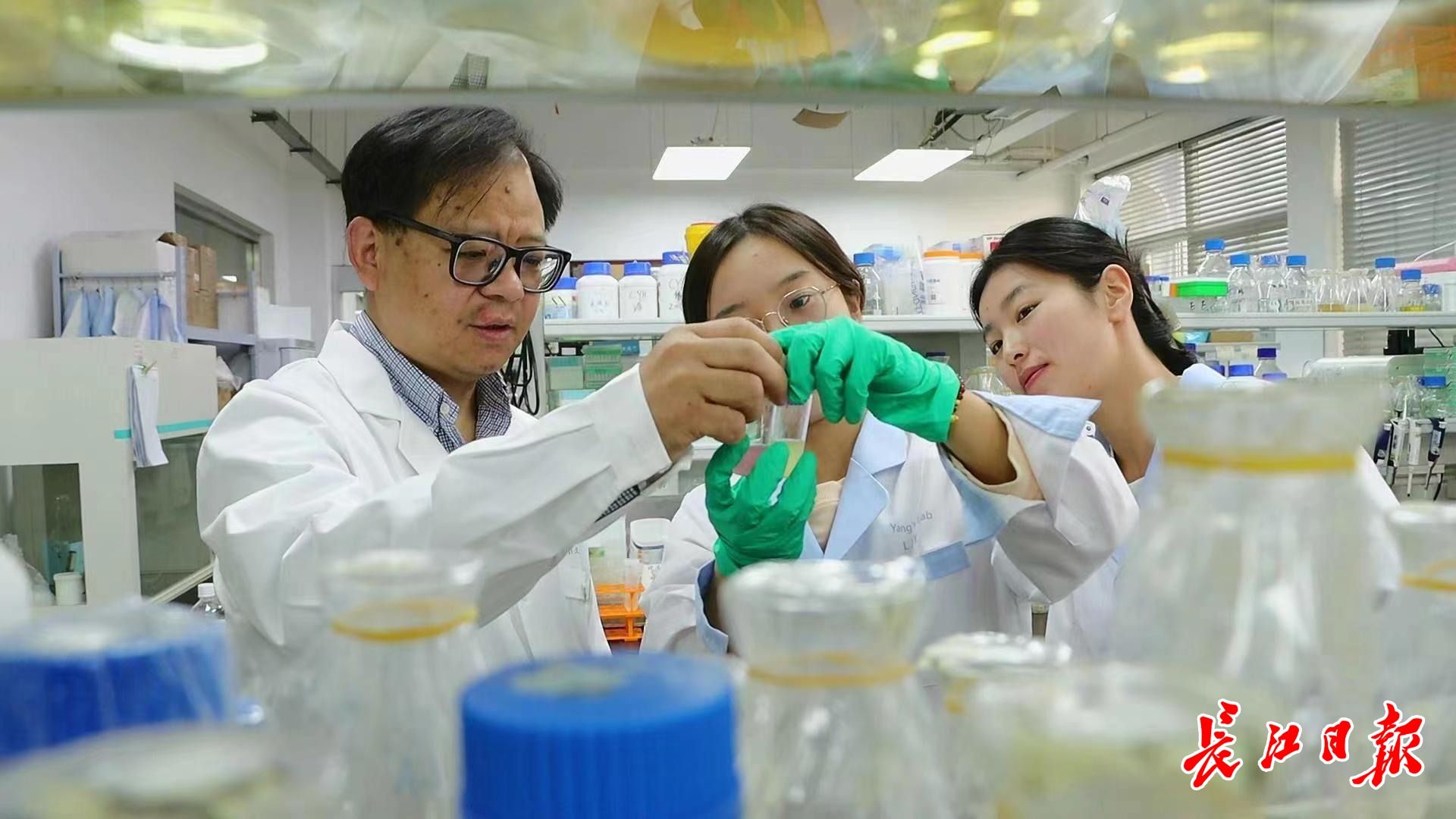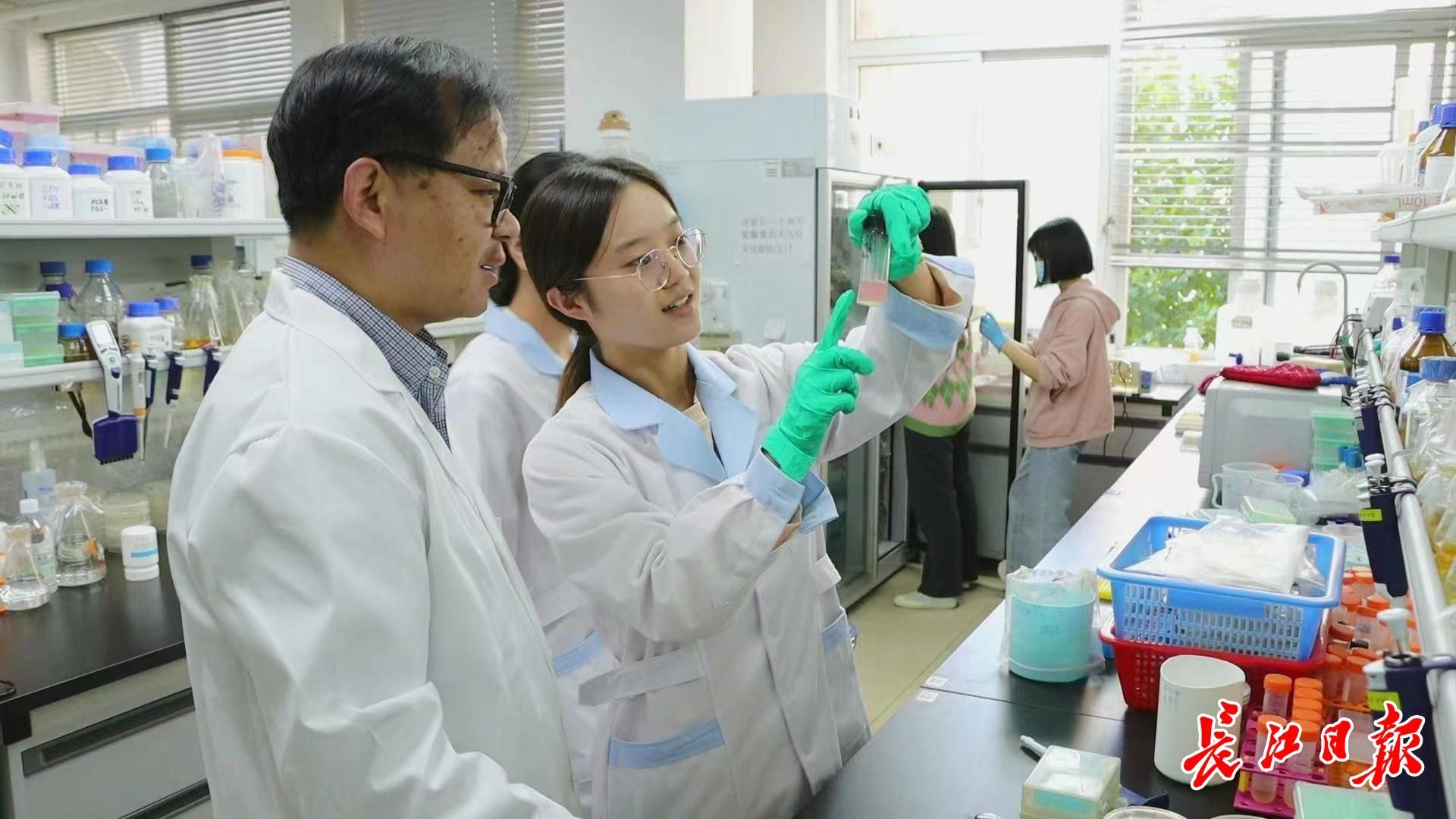 杨世辉教授指导学生做实验。 记者杨涛 摄