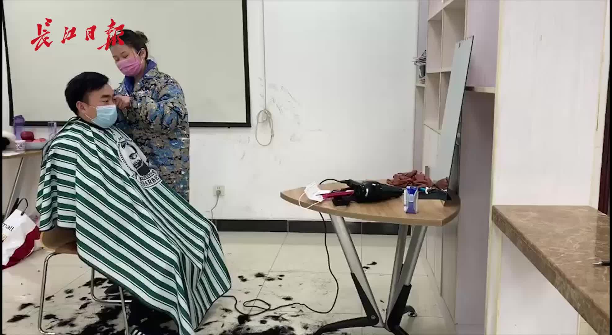 在连续8天护送发热病人到医院的过程中,王文元感到自己头发长穿防护服不方便,对自身防护也不利,他向教导员提出了想法:“从年前工作到现在,我看大家头发都长了,这在转运患者过程中会增加感染风险,就让我做大家的理发师吧!”
