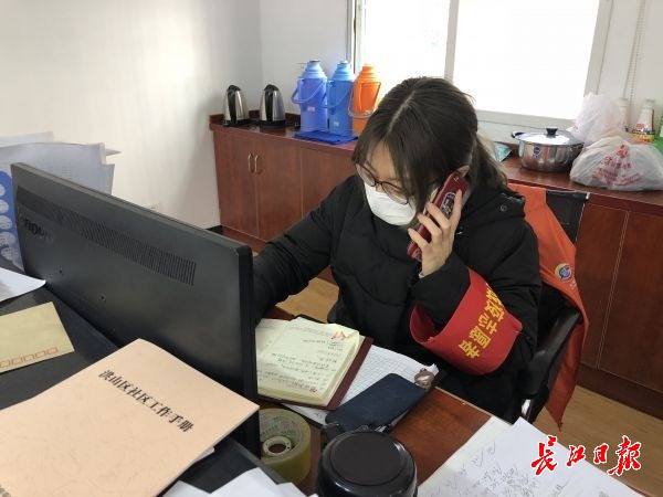 万莹在社区党群服务中心进行电话回访 记者陶可祎 摄