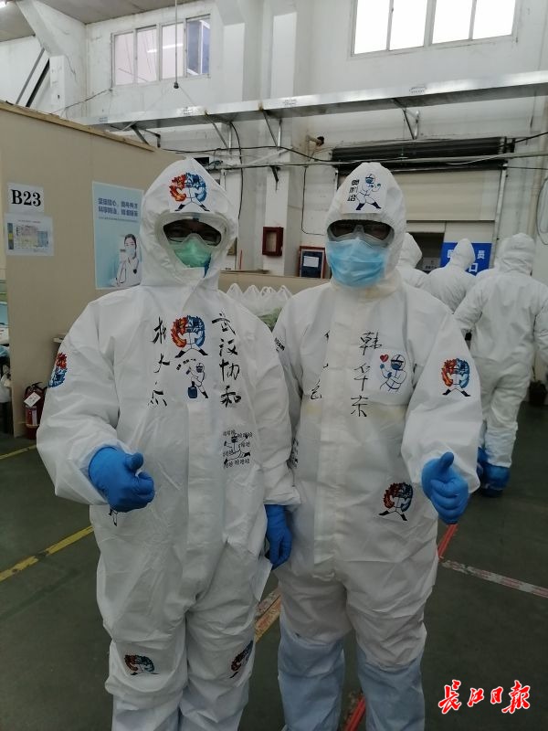 表情包已经贴在了江汉开发区方舱医护人员身上