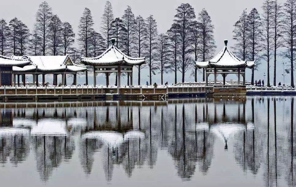 ▲ Pavilions at East Lake after snowfall