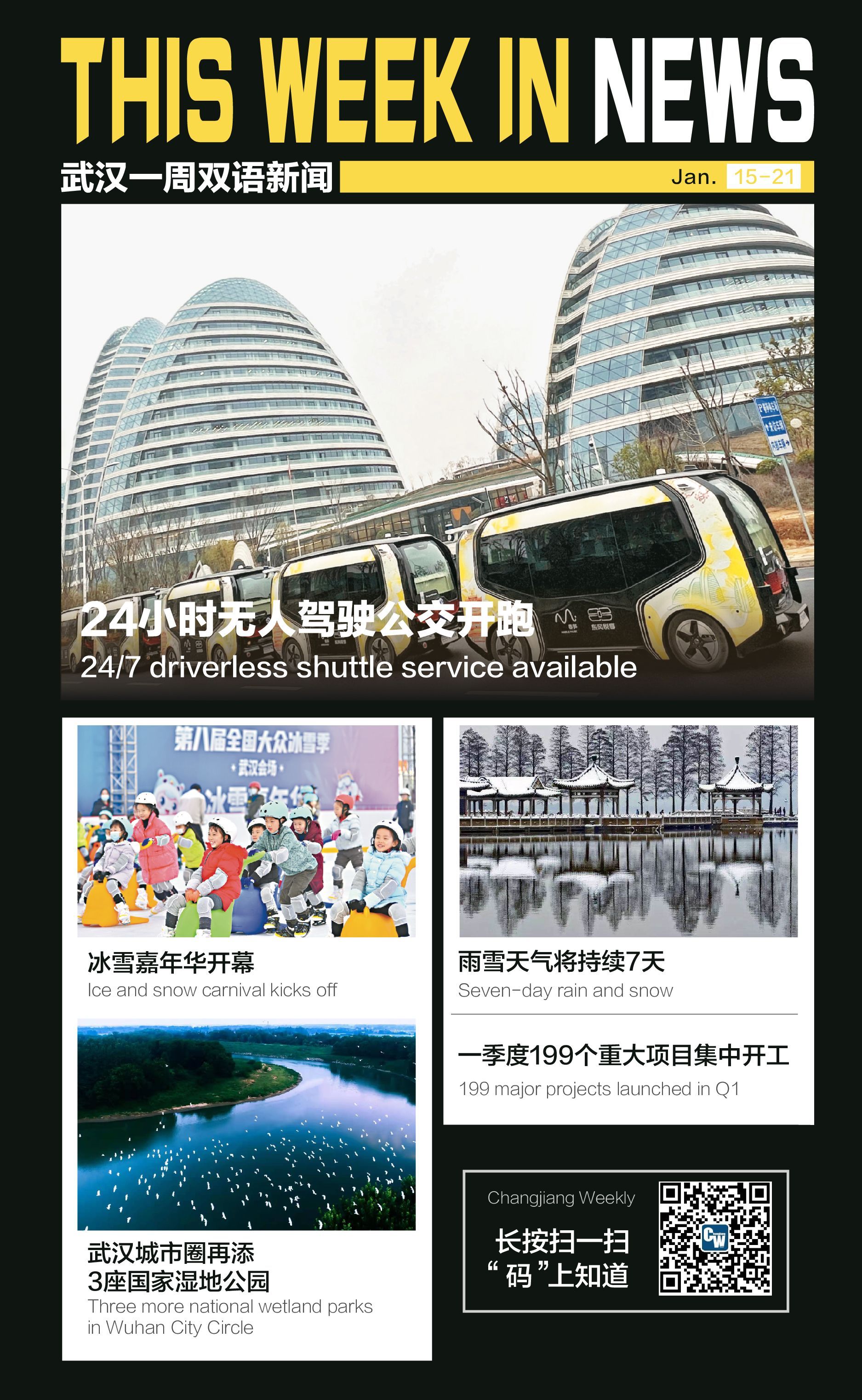 Sharing-VAN "Chunsun" of Dongfeng Yuexiang became the first self-driving bus model featuring the vehicle-infrastructure cooperative system to provide 24-hour service in China. It has been in trial operation since Jan. 19 and will serve about 50,000 residents living along the bus routes when put into normal operation.
