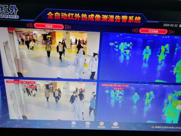 武汉华星光电员工相隔一定距离通过红外快速筛选装备测温,进入生产车间 资料图片