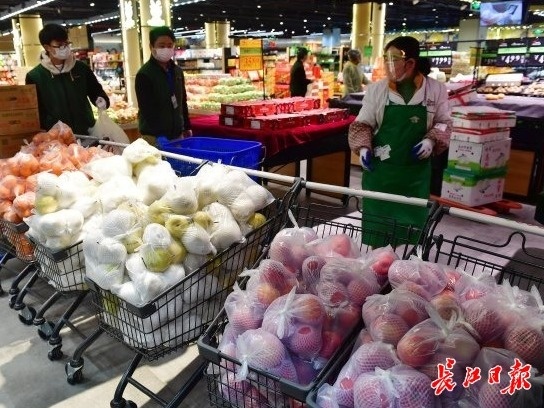 长江日报-长江网3月21日讯(记者张维纳)21日,大润发江汉店开门营业。上午10时左右,长江日报-长江网记者在超市门口看到,3位顾客准备进入超市采购,超市员工先测量顾客的手腕处温度,同时提醒顾客准备好健康码。“如果没有健康码,社区开具的出入证明也可以”,工作人员介绍。记者观察到,前往超市购物的顾客并不多,该店店长蔡曼介绍,从上午9时至上午11时,两个小时时间共接待顾客110位。