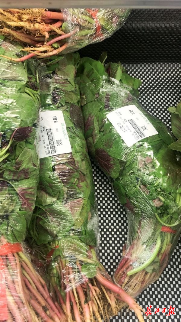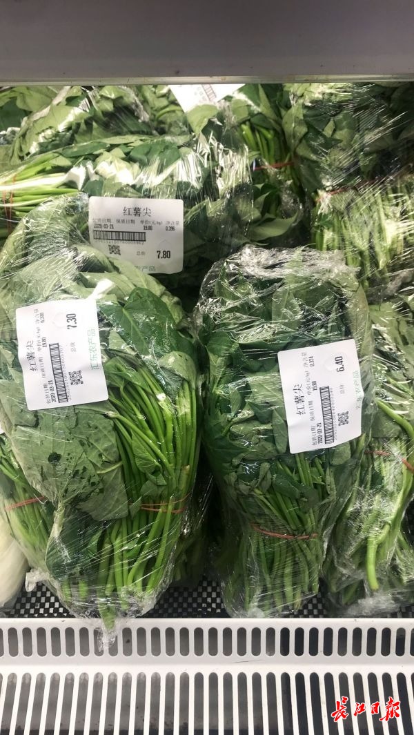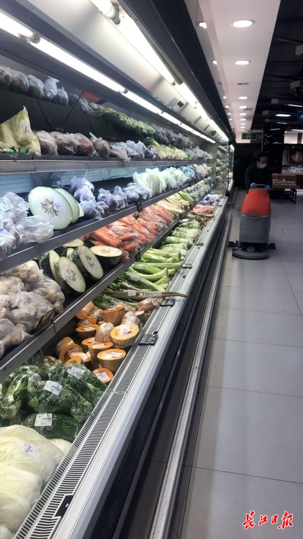 除了继续为周边社区提供社区团购商品的打包和分拣外,超市内,大批当季新品时令蔬菜——苋菜、蒜台、红薯尖纷纷上架。记者现场看到,蔬菜水果的货架满满当当、品种丰富,前期暂停上货的鲜肉、活鱼、豆制品、鲜河粉、热干面等柜台全部重新打开。