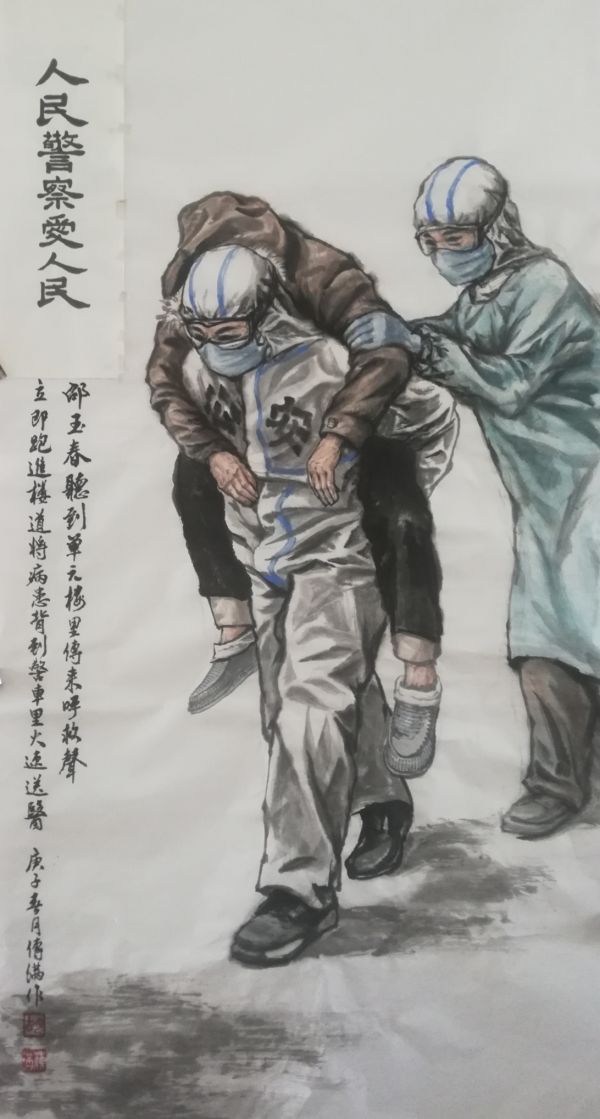 从构思到成品,胡传满每幅作品平均要花五六天的时间,目前已经创作了9幅成品。其中“英雄一路走好”“时间就是生命”等3幅作品的尺寸都是1.8米×0.9米,创作难度非常大。“国画和油画不同,一笔都不能错,而画人物比花花草草更难,要抓住人物的精气神。”胡传满告诉长江日报-长江网记者,目前他正在创作另一幅作品叫做“英雄”,向此次抗疫中的院士和医生们致敬。