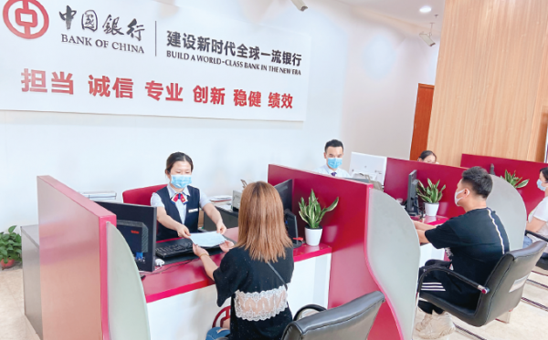 中国银行武汉青山支行营业部全体员工为客户提供优质服务。