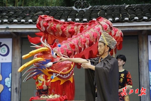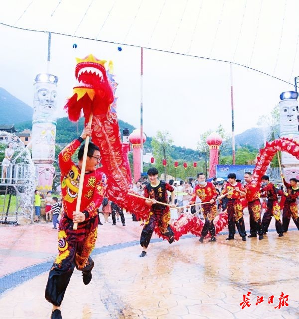 长江日报-长江网6月26日讯(记者叶飞艳 通讯员李浩)敲起威风的锣鼓,几条水龙上下翻飞,游客在欢呼声中将水向舞龙者和龙身上泼去……端午节小长假,武汉锦里沟旅游度假景区推出武汉市首届土家水龙节,让游客在游玩的同时体验土家族传统文化魅力。