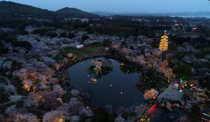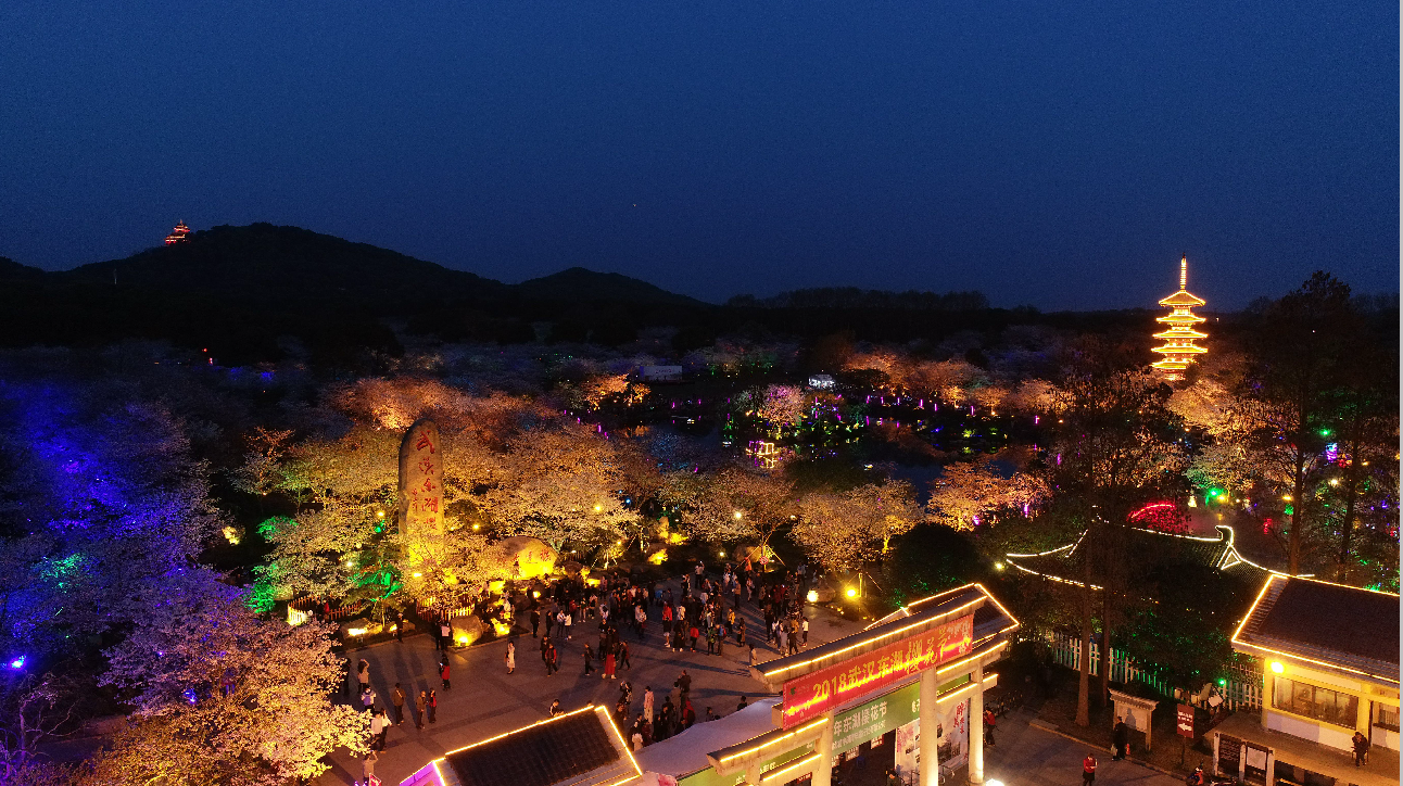 2018年3月27日,东湖樱花园的夜景迷人,吸引很多中外游客在夜色的花海里畅游。记者杨涛 摄