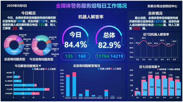 我背后有7名技术民警支持,他们分别为AI系统做热线客服支持、热线研判支持、热线管理员和业务专家等。从去年12月开始,他们就一直对我培训,培训我学习户政、出入境各类业务问题227个,涉及各种话术问法612条,如今我接受市民咨询的解答成功率已达83%。