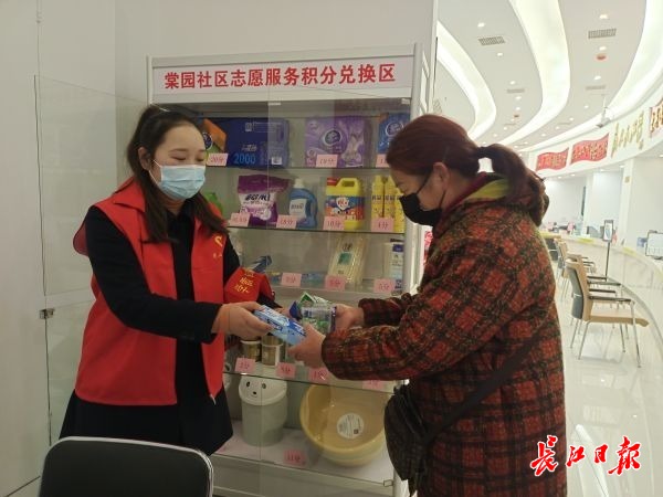 长江日报大武汉客户端1月27日讯(记者刘晨玮)“参加志愿服务没想过要报酬,但积分奖励让我们感觉付出得到了肯定,干劲更足!”27日,东湖新技术开发区花山街道棠园社区的社区志愿者叶翠华来到社区,拿着“爱心积分储蓄手册”兑换物品,她是社区“棒棒棠”志愿联盟的志愿者,也是社区时间银行迎来的首批顾客之一。