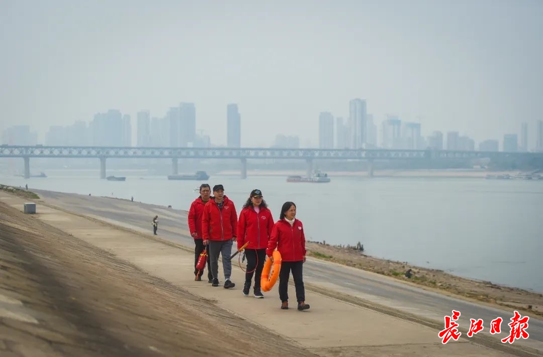 长江救援志愿队队员在江边巡逻。记者许魏巍 摄
