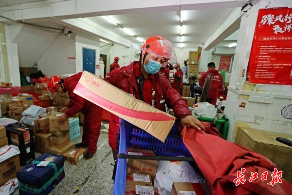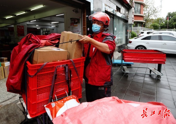 长江日报-长江网10月3日讯(记者张珺)10月3日上午9时,武汉快递小哥张昊绑好了一车快递包裹准备出发。与往常一样,他从位于青山区吉林街14号的京东仁和营业部出发,为周边居民配送网购的快递包裹。