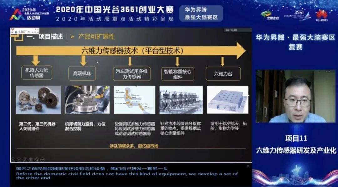 “六维力传感器研发及产业化”项目,拿到全场最高分,直通光谷半决赛。据了解,安装在机器人关节臂末端的六维力传感器是力觉控制系统的核心部件。