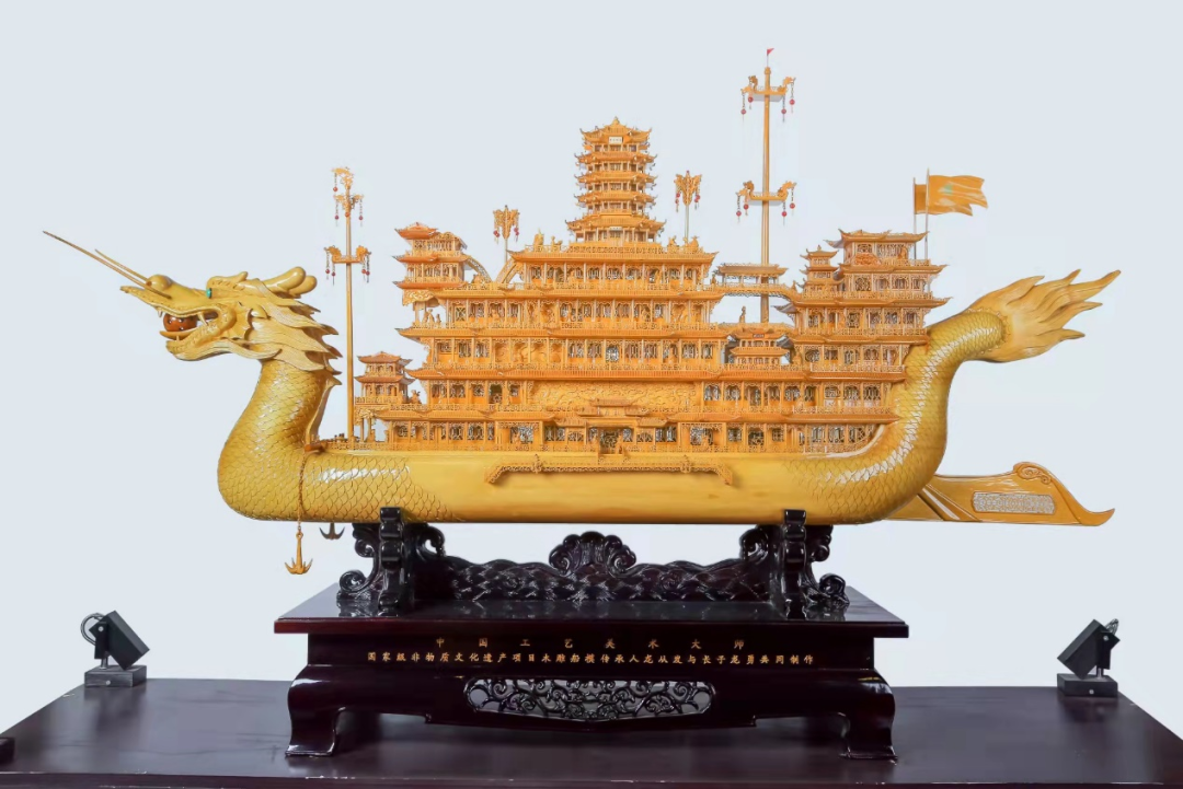 武汉木雕船模,现已被列为国家级非物质文化遗产保护项目,第四代传人的代表人物龙从发,2009年被确立为国家级非物质文化遗产项目代表性传承人。