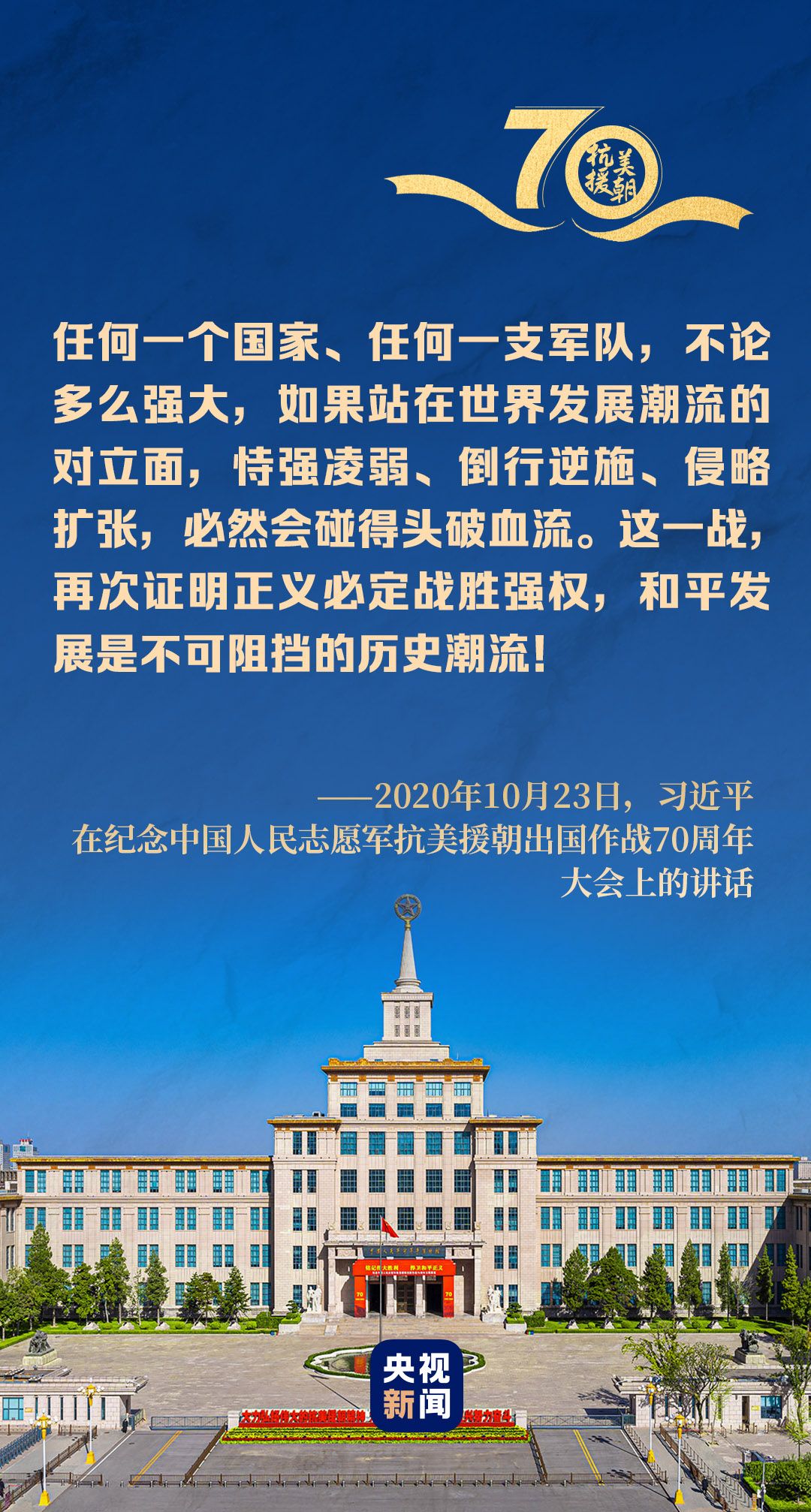 在纪念中国人民志愿军抗美援朝出国作战70周年大会上,习近平总书记这样宣示中国立场: