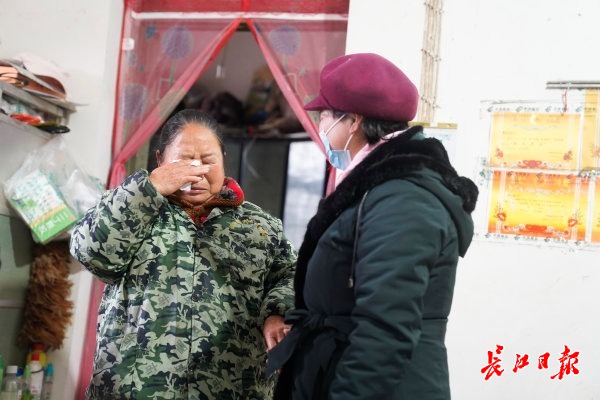 学生柳湘媛的外婆易翠香看到郑铭老师激动地哭了起来。记者彭年 摄