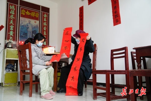 郑铭握着老人的手说:“只要是我的学生,就算已经毕业了,也还是我的孩子。”临近春节,郑铭带来了自己手写的一副对联“虎祥鹤泰适宜中国梦,气正风清喜迎幸福年”,给柳湘媛一家送来特别的新年祝福。