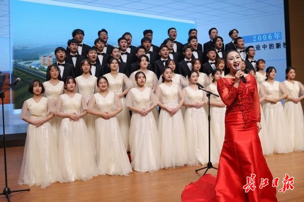 国家一级演员马娅琴带领学校艺术团演唱《武汉铁院之歌》。记者施政 摄