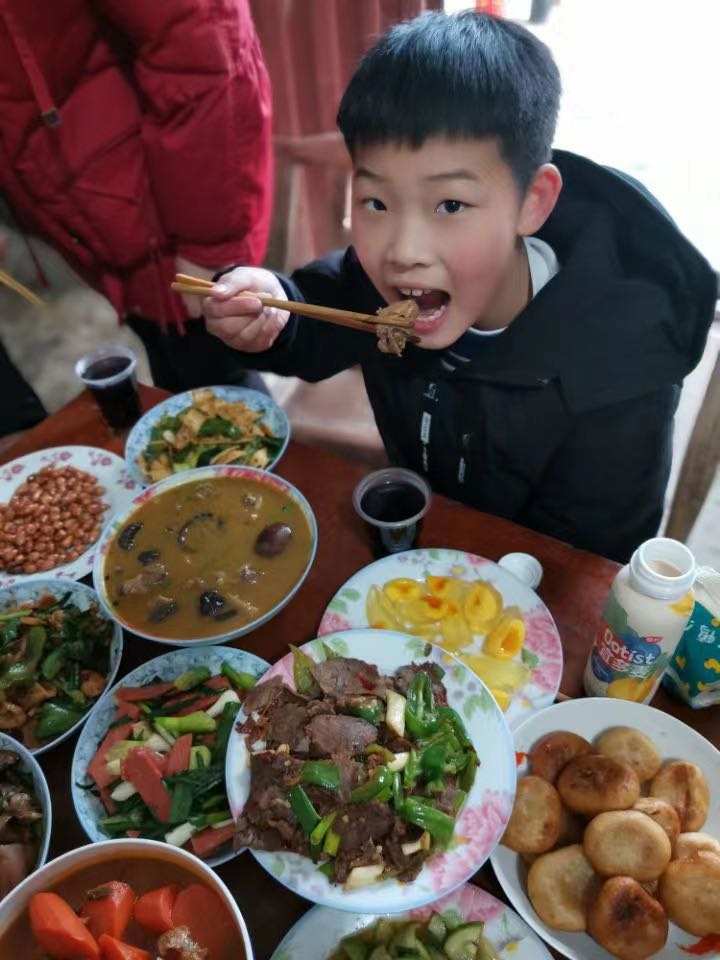 孩子们推介自家年夜饭的“传统菜”。通讯员陈希 摄