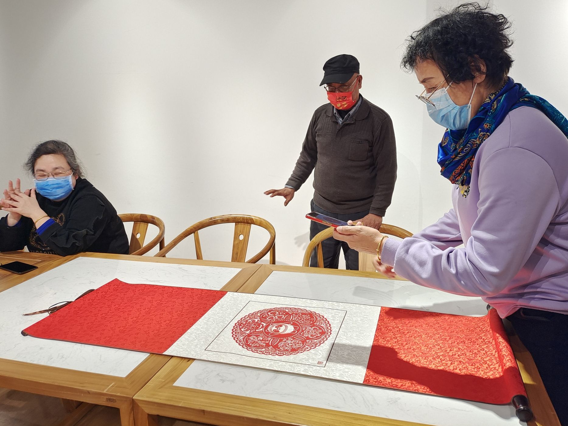 在轻松愉悦的氛围下,记者们同景山社区居民一道,体验了非遗剪纸、非遗旗袍盘扣制作、非遗脸谱彩绘,观赏了景山社区居民们自发组建的京剧队和模特队排练,感受了一把正宗的“北京人生活”,还用非遗剪纸技艺留下了自己的“冬奥记忆”。