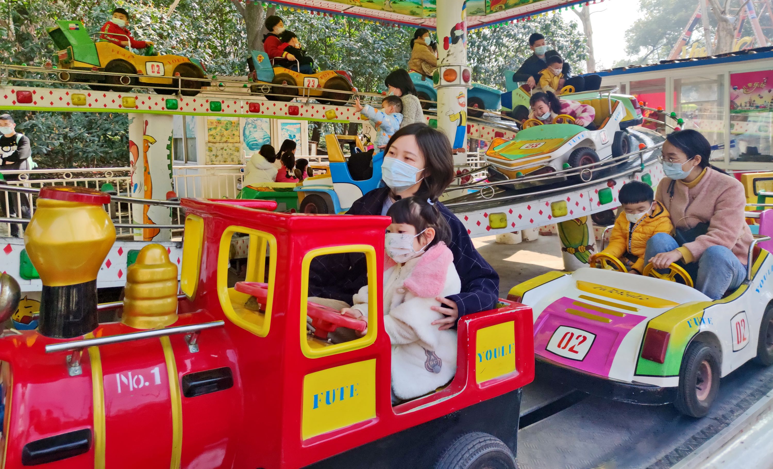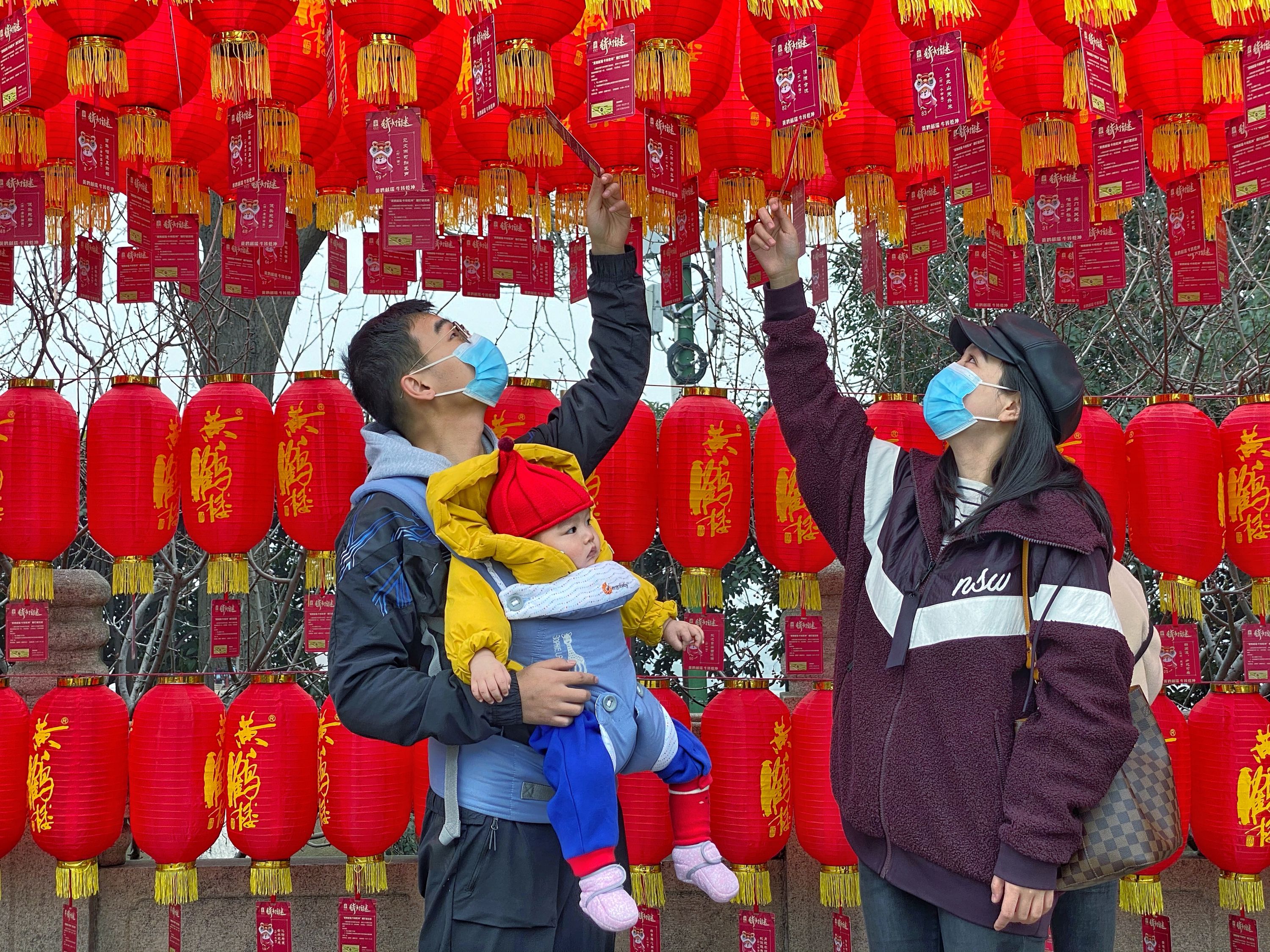 黄鹤楼公园人流如织,本地市民、外省留汉游客游公园、看演出、猜灯谜,欢欢喜喜过大年。城市摄影队 王芳 摄