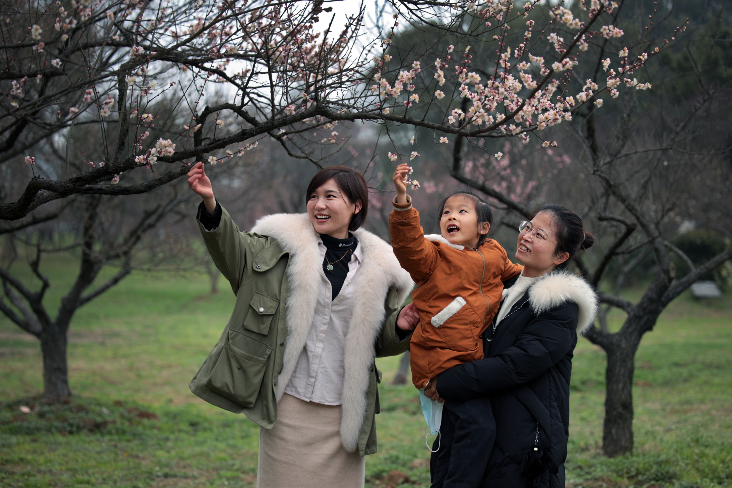 东湖梅园,游客在赏梅拍照留念。城市摄影队 童永秀 摄